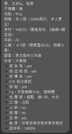 偷拔套 / 偷錢 / 偷攝影 / 粗魯暴力 / 假鈔 (直接踢出並公布黑名單)